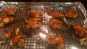 A large wire baking rack is a must for allowing air to circulate around the wings when crisping. I use this extra large Nordic Ware cooling rack. Line the baking sheet underneath with foil to avoid mess. The cooling sheet will have to be cleaned after cooking, and a stiff brush is helpful in removing baked on pieces of skin & meat:-)