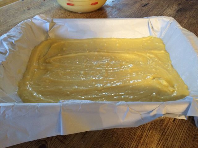 I made this in a 9 x 13 glass baking dish lined with parchment. Parchment makes it easy to lift baked goods from the pan before glazing, and cutting into perfect squares is much easier.